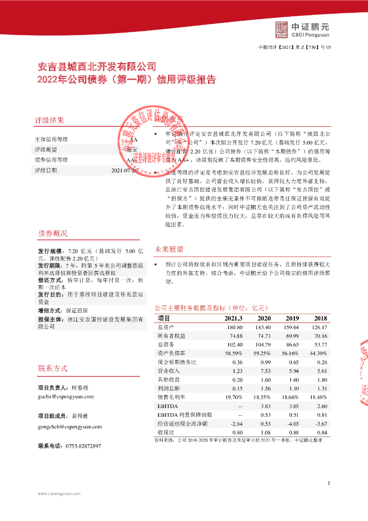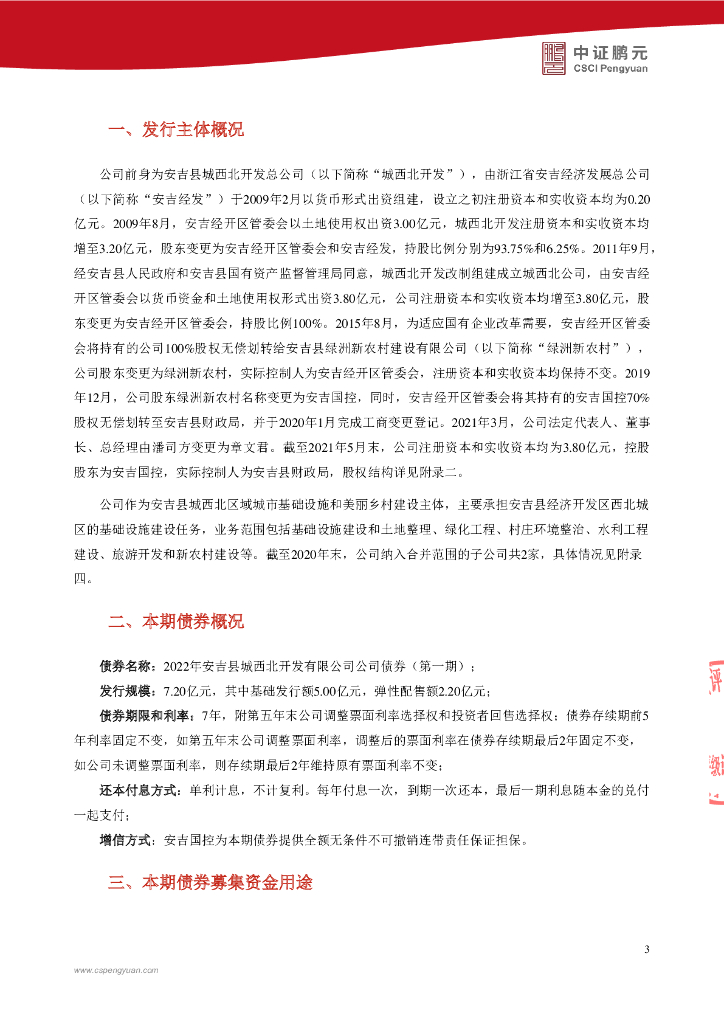 鹏元:2022年安吉县城西北开发有限公司公司债券(第一期)信用评级报告.pdf