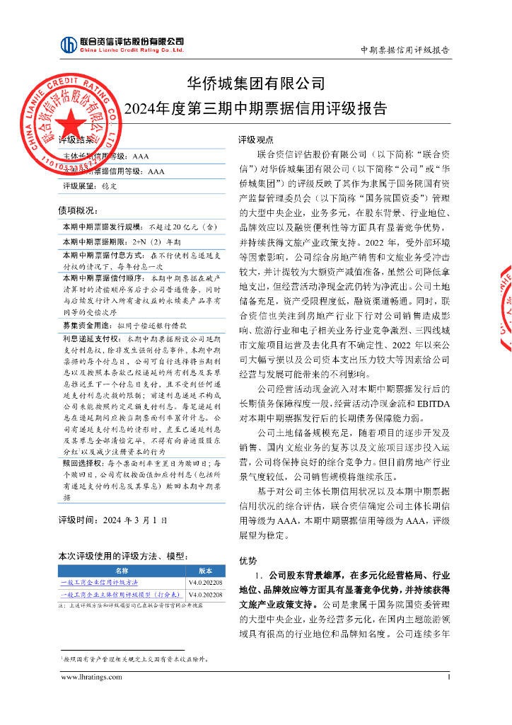 联合资信:华侨城集团有限公司2024年度第三期中期票据信用评级报告.pdf