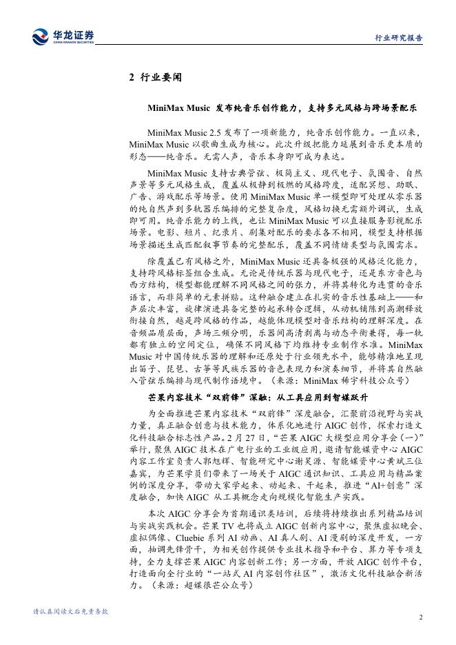 华龙证券:传媒行业周报:35家中国厂商入围全球收入百强,MiniMax发布纯音乐生成能力.pdf