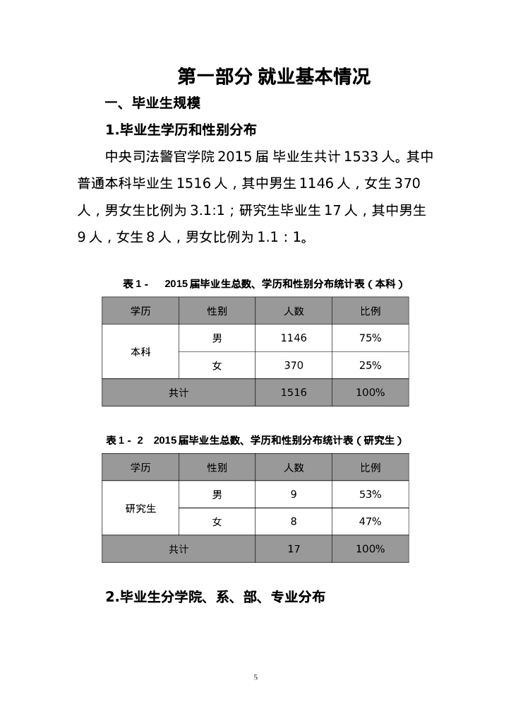 中央司法警官学院2015届毕业生就业质量年度报告.doc