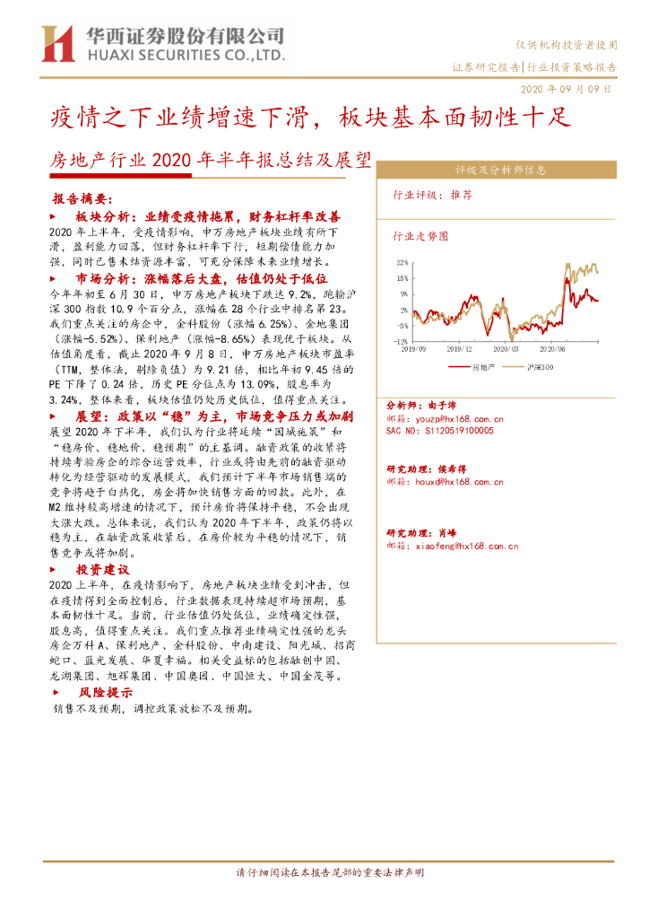 华西证券:房地产行业2020年半年报总结及展望:疫情之下业绩增速下滑,板块基本面韧性十足.pdf