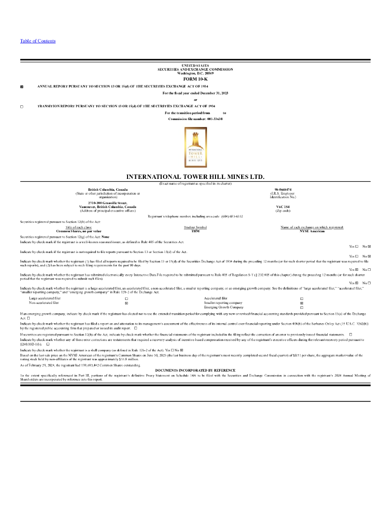 International Tower Hill Mines Ltd.(ITH)2023财年年度报告(英文版).pdf