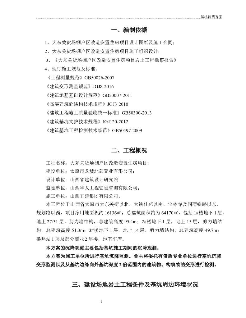剪力墙住宅楼项目深基坑沉降监测方案.doc