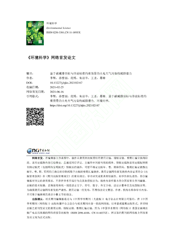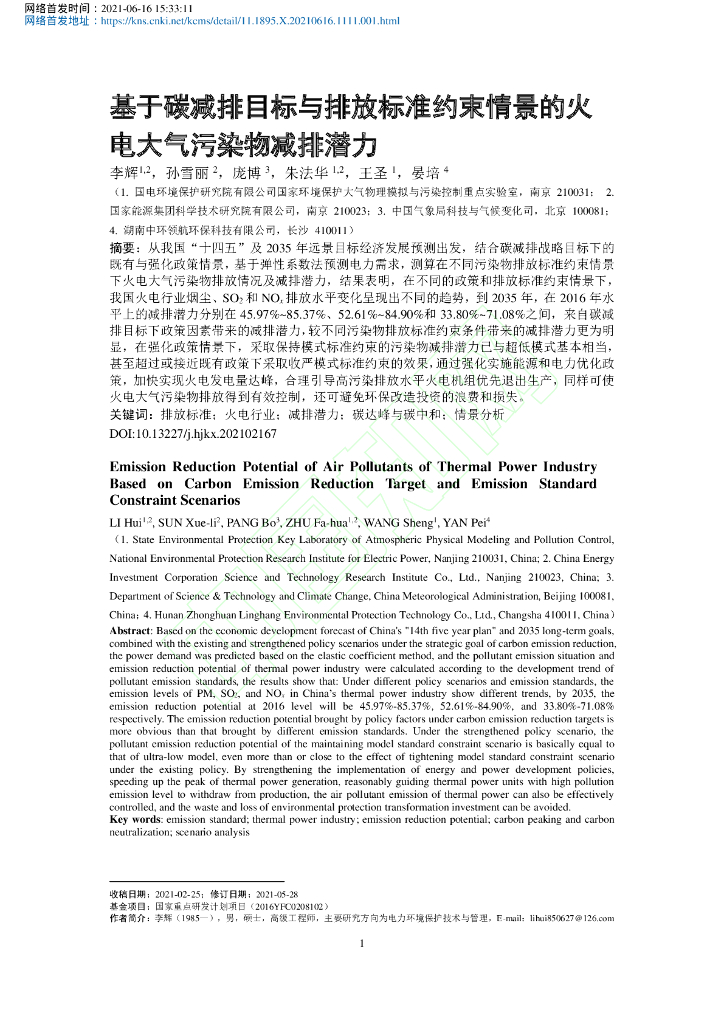 基于碳减排目标与排放标准约束情景的火电大气污染物减排潜力.pdf