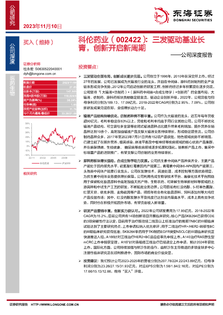 东海证券:科伦药业(002422)-公司深度报告:三发驱动基业长青,创新开启新周期.pdf