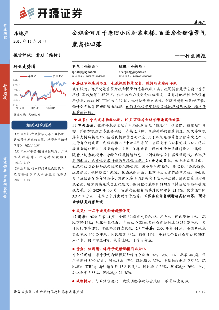 开源证券:房地产行业周报:公积金可用于老旧小区加装电梯,百强房企销售景气度高位回落.pdf