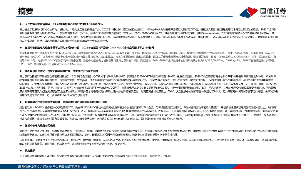 国信证券:数据中心电力设备专题:人工智能推动算力需求爆发,电力设备迎来成长新赛道.pdf