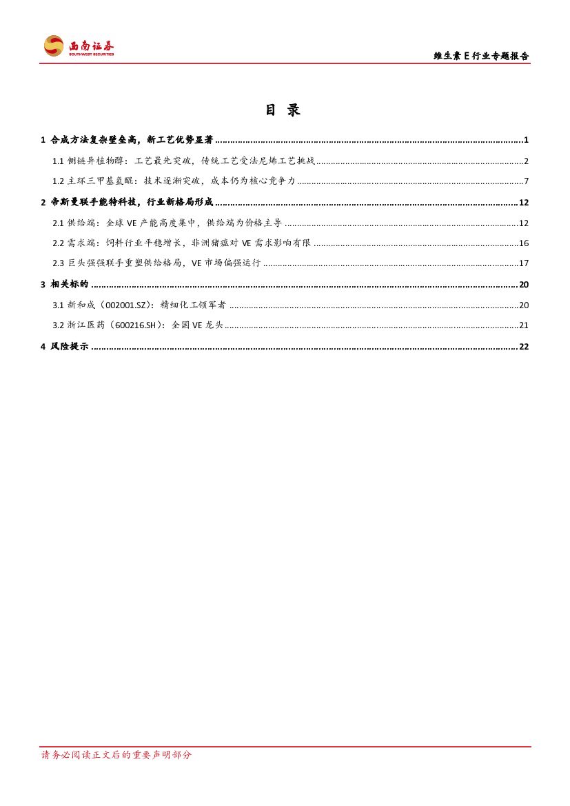 西南证券:维生素E行业专题报告:行业并购及工艺变革推动VE行业景气度上行.pdf
