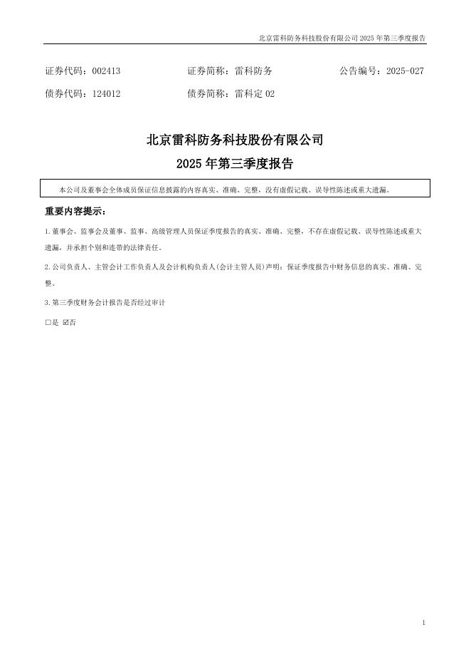 002413-雷科防务:2025年三季度报告.pdf