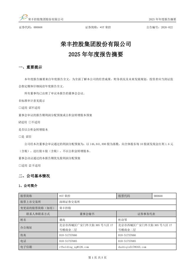 000668-*ST荣控:2025年年度报告摘要.pdf