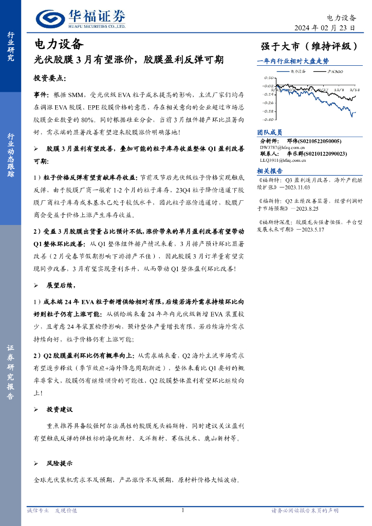 华福证券:电力设备:光伏胶膜3月有望涨价,胶膜盈利反弹可期.pdf