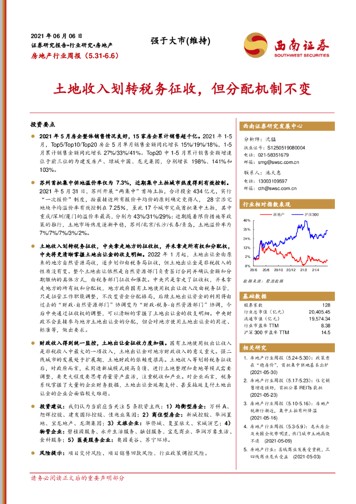 西南证券:房地产行业周报:土地收入划转税务征收,但分配机制不变.pdf