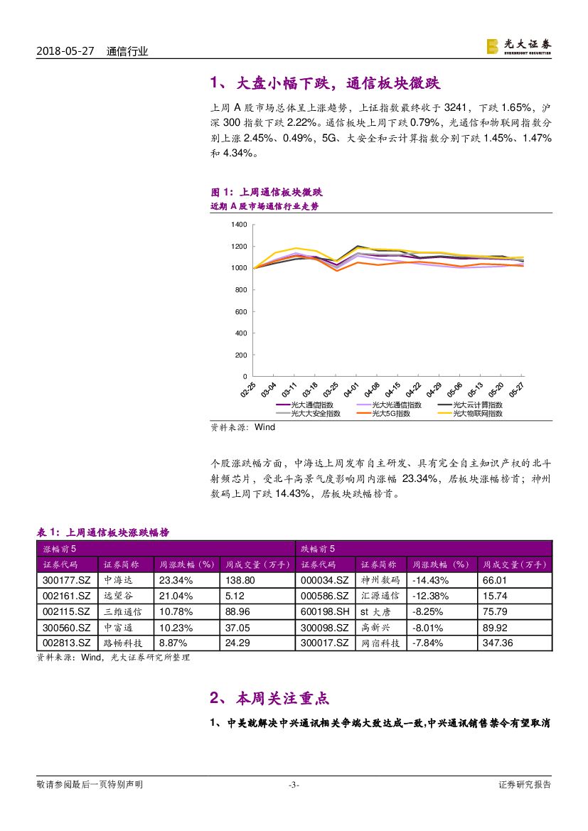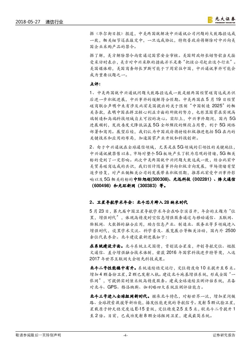 光大证券:通信行业2018年第22周周报:中兴事件逐步缓和,芯片成本降低加速北斗商用化.pdf