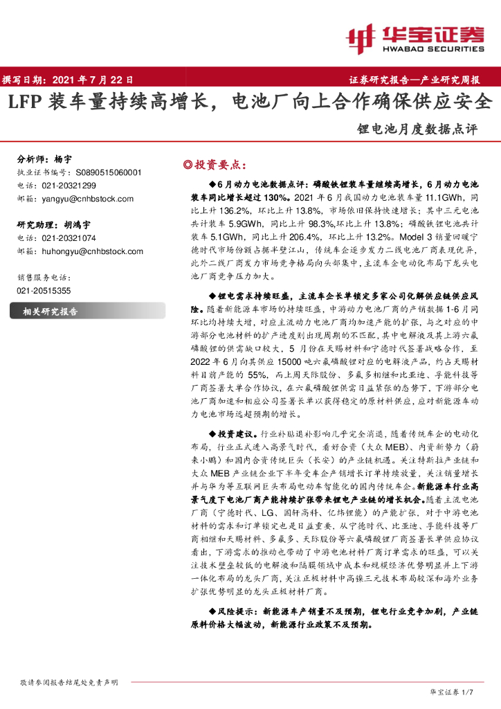 华宝证券:锂电池月度数据点评:LFP装车量持续高增长,电池厂向上合作确保供应安全.pdf
