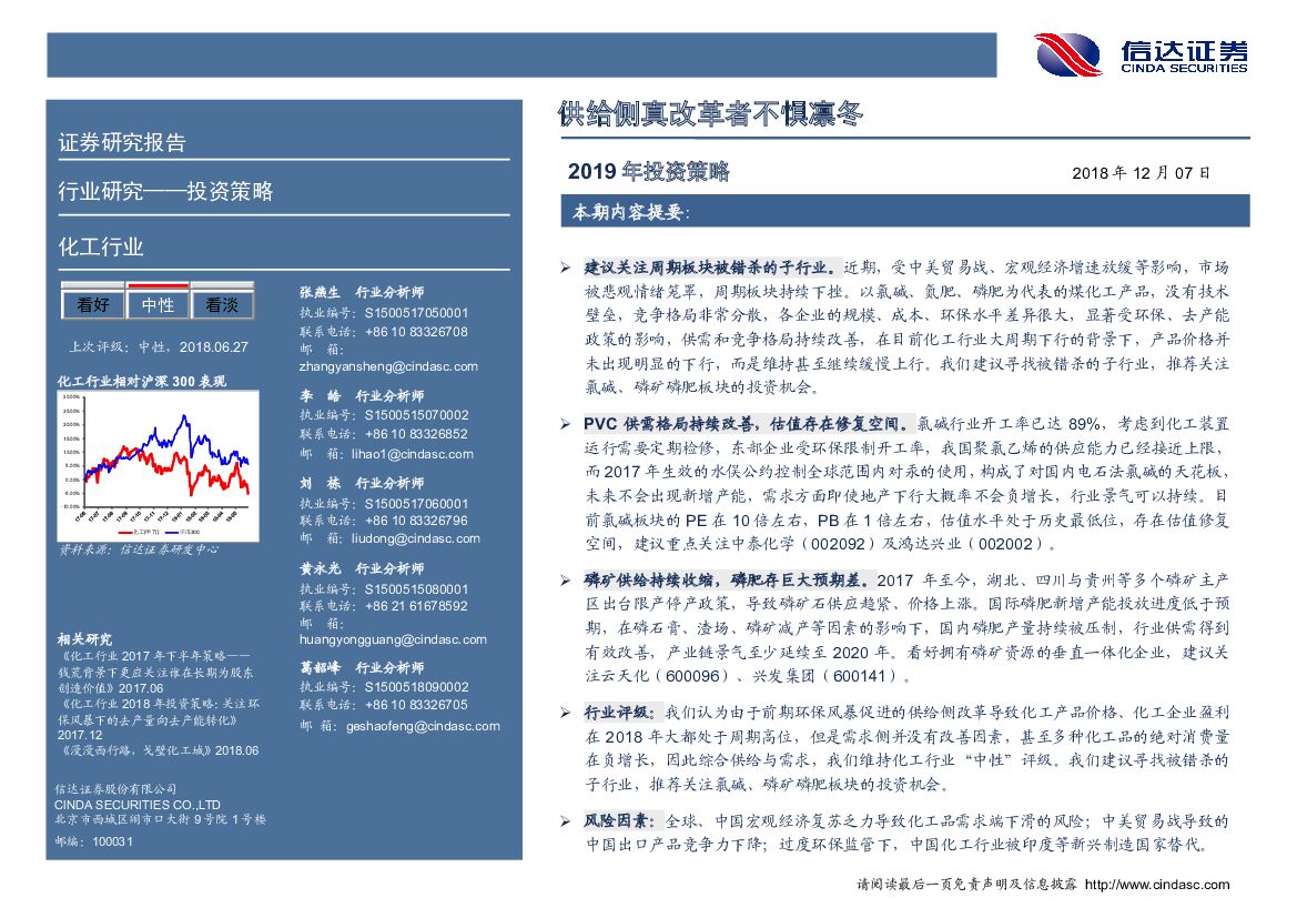 信达证券:化工行业2019年投资策略:供给侧真改革者不惧凛冬.pdf