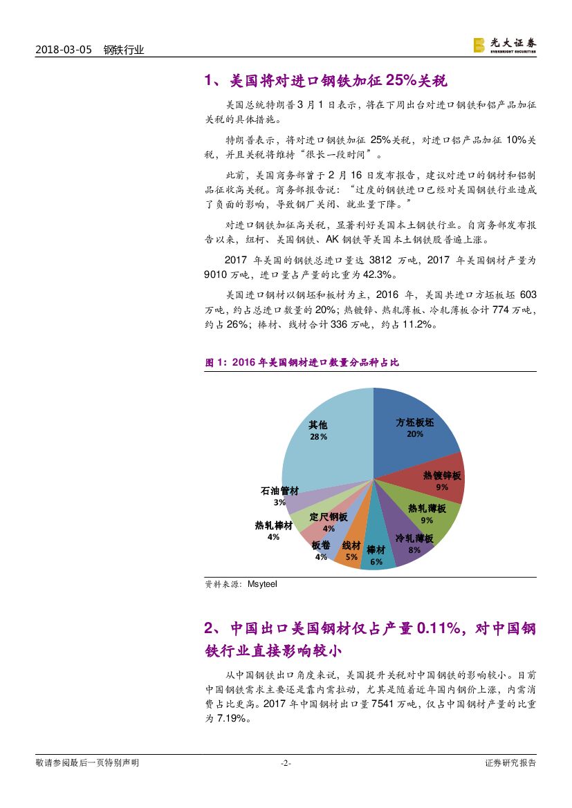 光大证券:钢铁行业:美国拟加征25%钢铁进口关税,对中国钢市直接影响较小.pdf