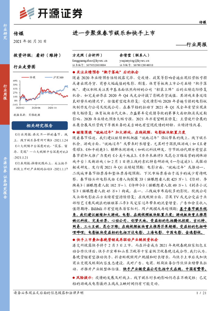 开源证券:传媒行业周报:进一步聚焦春节娱乐和快手上市.pdf