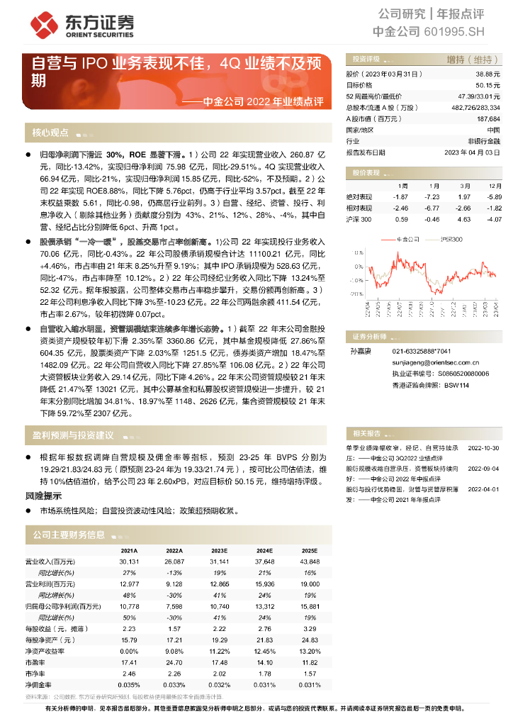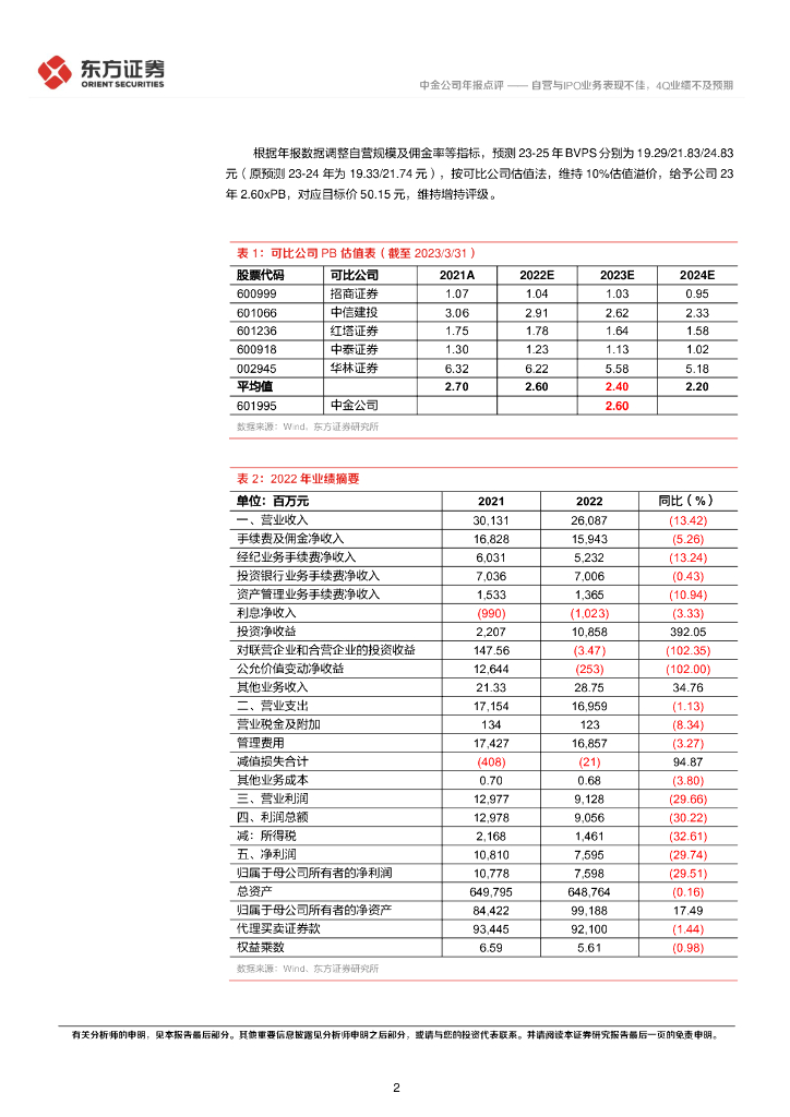 东方证券:中金公司2022年业绩点评:自营与IPO业务表现不佳,4Q业绩不及预期.pdf