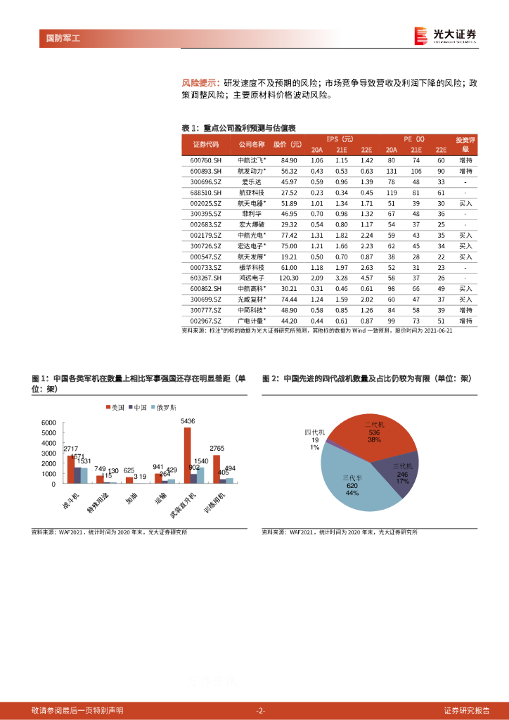 光大证券:2021年6月21日国防军工板块大涨点评:景气度持续,板块关注度提升推动估值回升.pdf