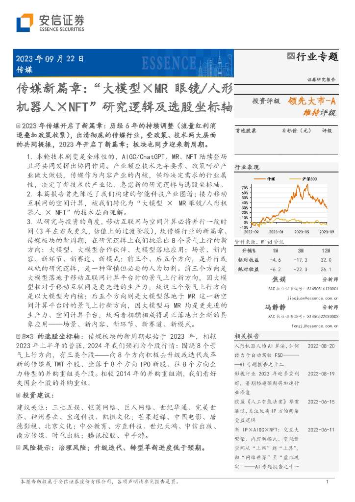 安信证券:传媒新篇章:“大模型× MR 眼镜/人形机器人× NFT”研究逻辑及选股坐标轴.pdf