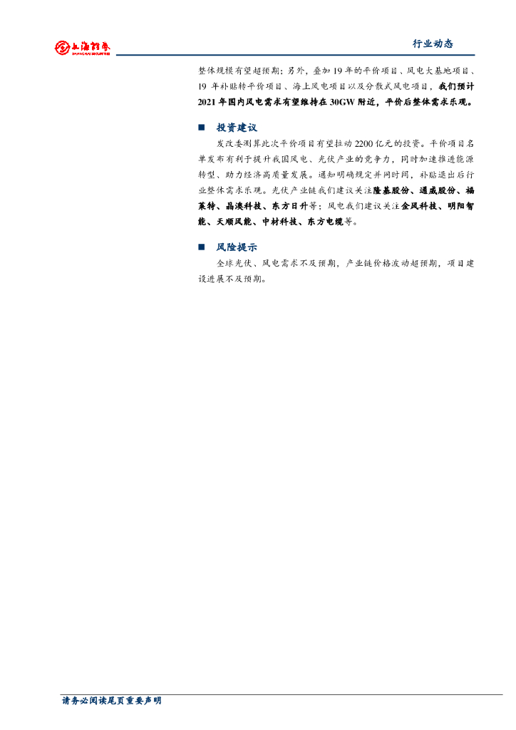 上海证券:2020年风电、光伏平价上网项目点评:平价项目规模超预期,平价后需求不悲观.pdf