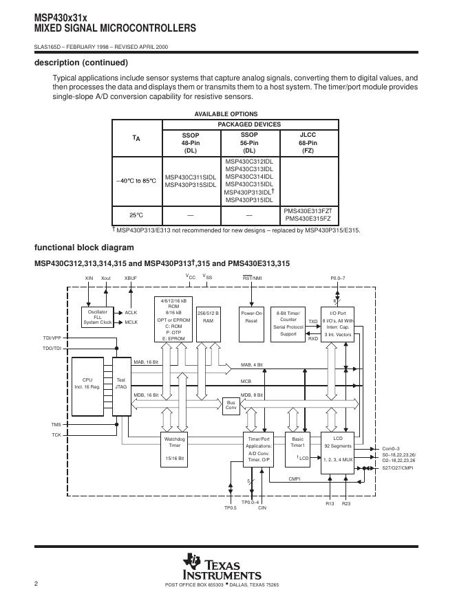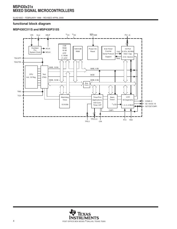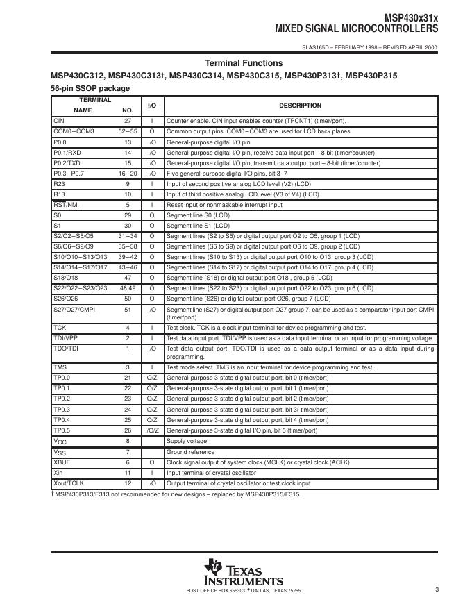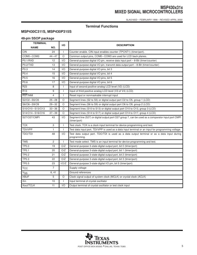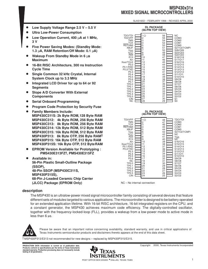 TEXAS INSTRUMENTS -MSP430x31x MIXED SIGNAL MICROCONTROLLERS 数据手册.pdf