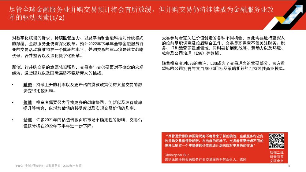 普华永道:2022年全球并购行业趋势回顾及下半年展望——金融服务业.pdf