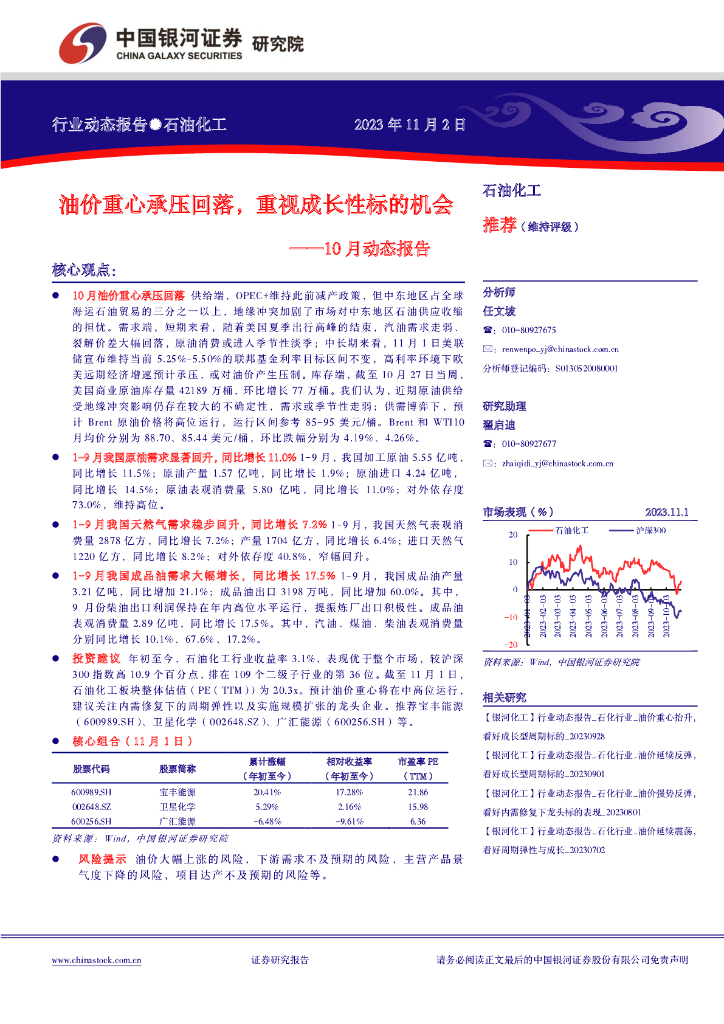 中国银河:石油化工10月动态报告:油价重心承压回落,重视成长性标的机会.pdf