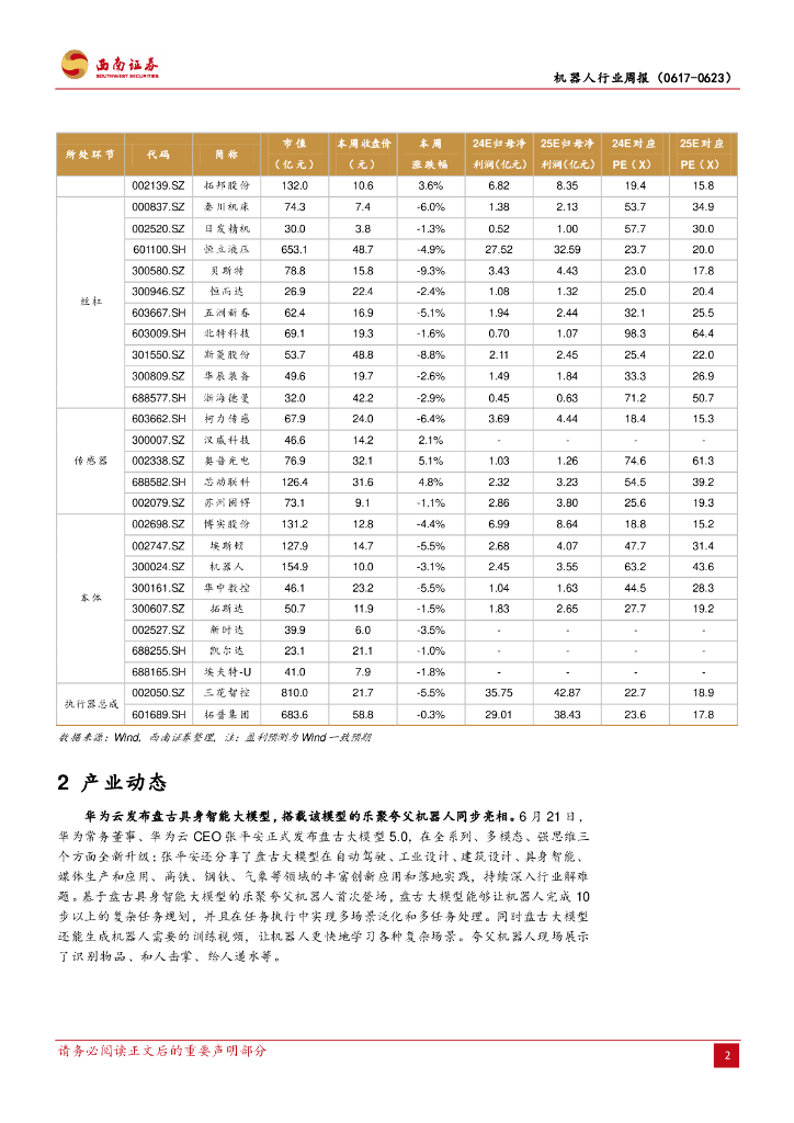 西南证券:机器人行业周报:华为云发布盘古具身智能大模型,乐聚夸父机器人同步亮相.pdf