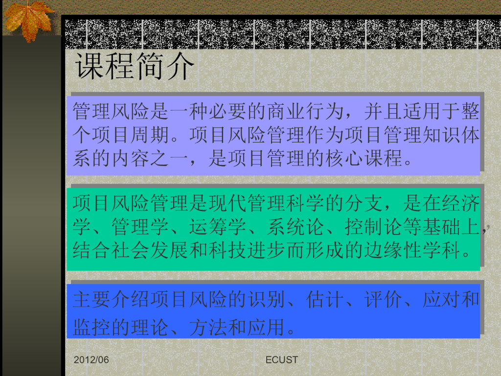 [上海]华东理工大学商学院项目风险管理与质量管理讲义.ppt