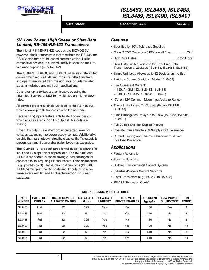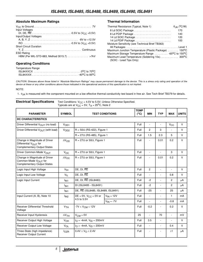 intersil ISL8483, ISL8485, ISL8488, ISL8489, ISL8490, ISL8491 数据手册.pdf