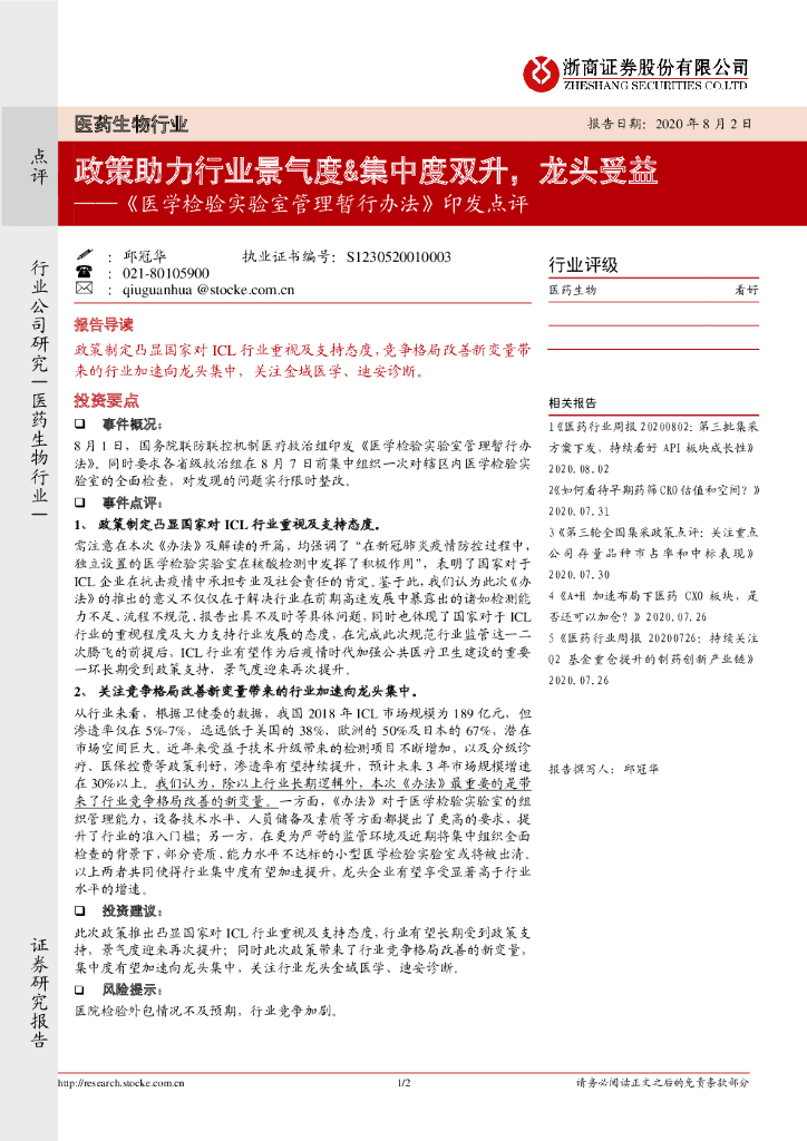 浙商证券:医药生物行业《医学检验实验室管理暂行办法》印发点评:政策助力行业景气度&集中度双升,龙头受益.pdf