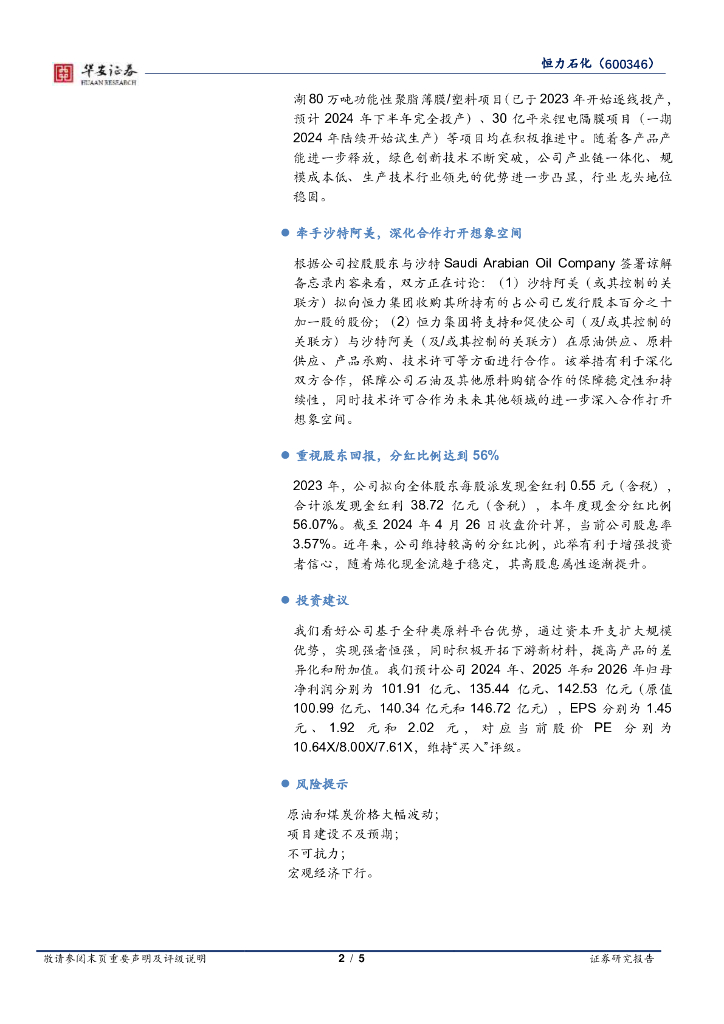 华安证券:恒力石化(600346)-盈利同比环比大增,牵手阿美深化石化领域合作.pdf