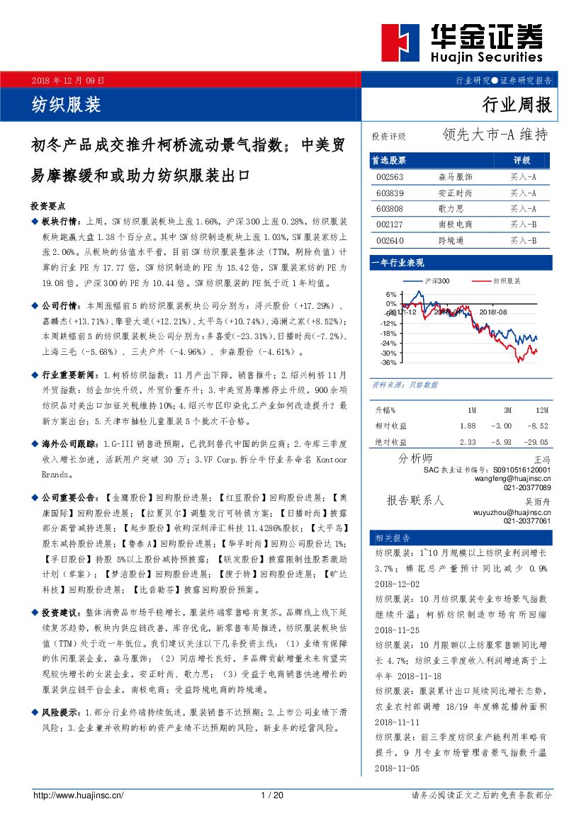 华金证券:纺织服装行业周报:初冬产品成交推升柯桥流动景气指数;中美贸易摩擦缓和或助力纺织服装出口.pdf