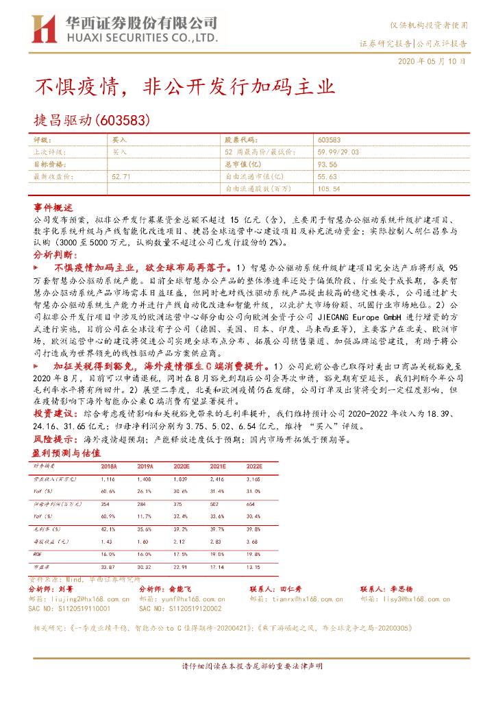 华西证券:捷昌驱动(603583)-不惧疫情,非公开发行加码主业.pdf