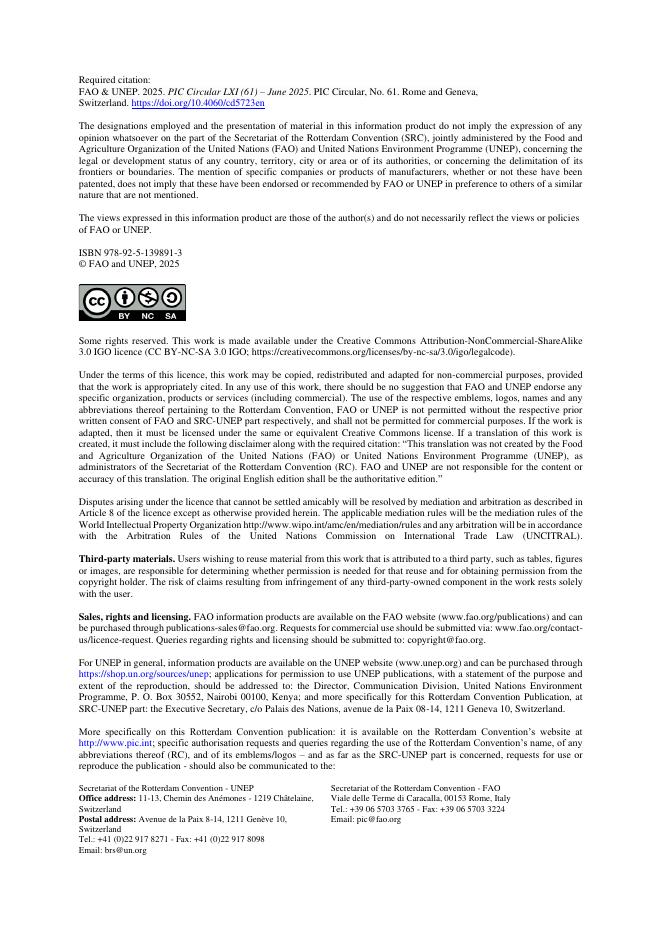 FAO联合国粮农组织:2025年6月PIC圆形LXI(61)报告(英文版).pdf