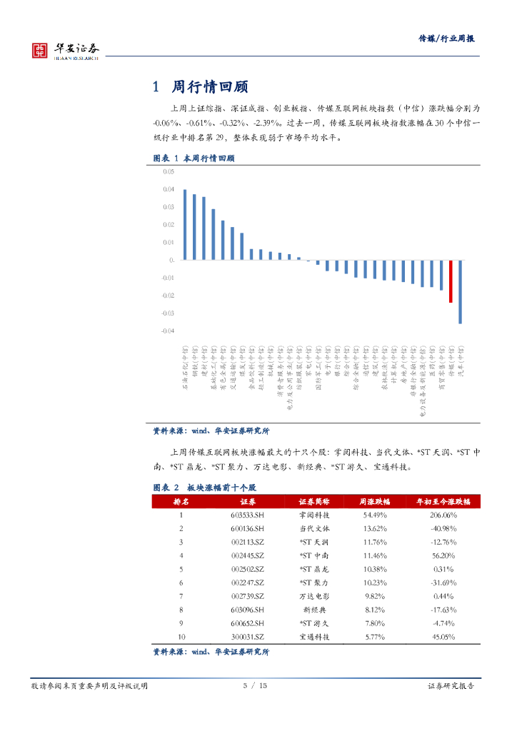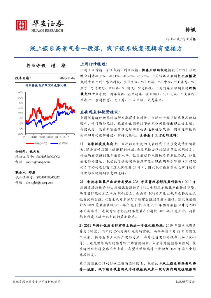 华安证券:传媒行业周报:线上娱乐高景气告一段落,线下娱乐恢复逻辑有望接力.pdf