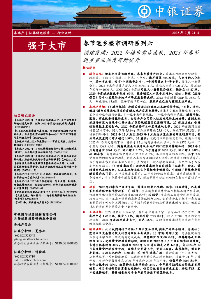 中银证券:春节返乡楼市调研系列六:福建霞浦:2022年楼市需求疲软,2023年春节返乡置业热度有所提升.pdf