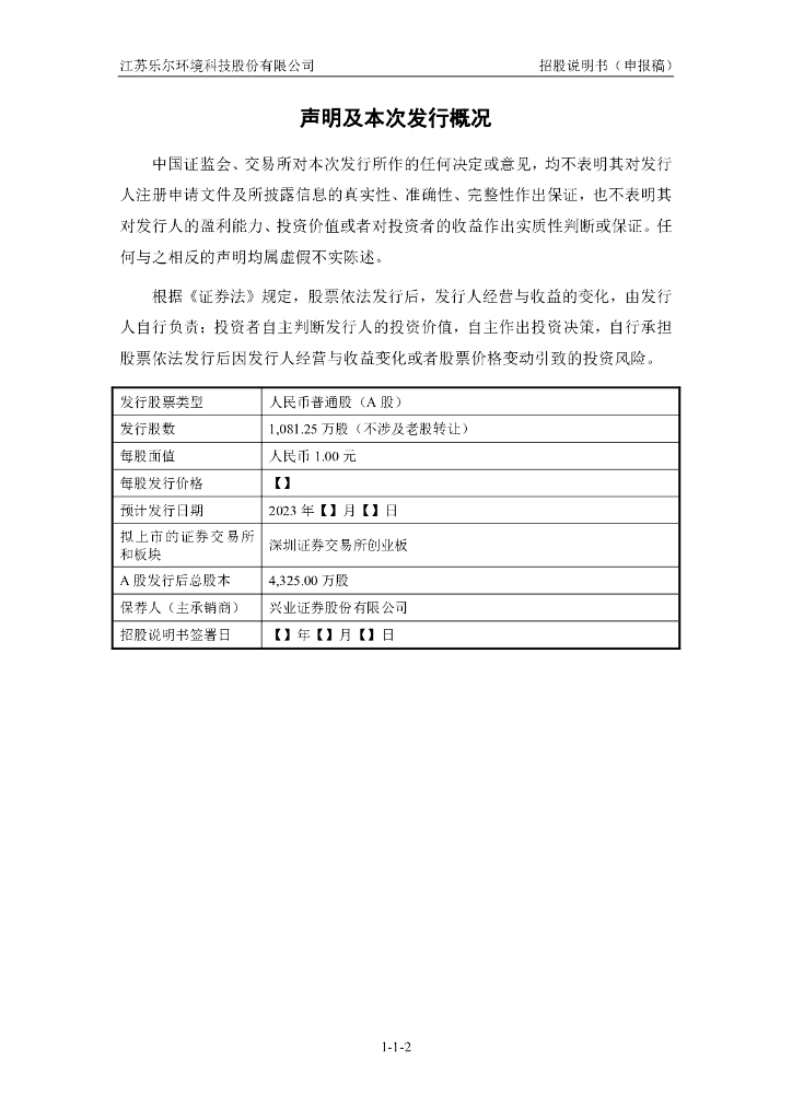 江苏乐尔环境科技股份有限公司深交所创业板IPO上市招股说明书.pdf