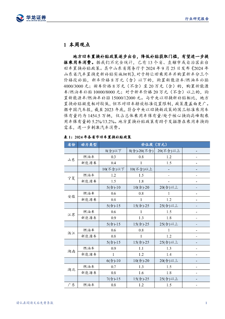 华龙证券:汽车行业周报:地方置换补贴逐步出台,支撑乘用车销量向上.pdf