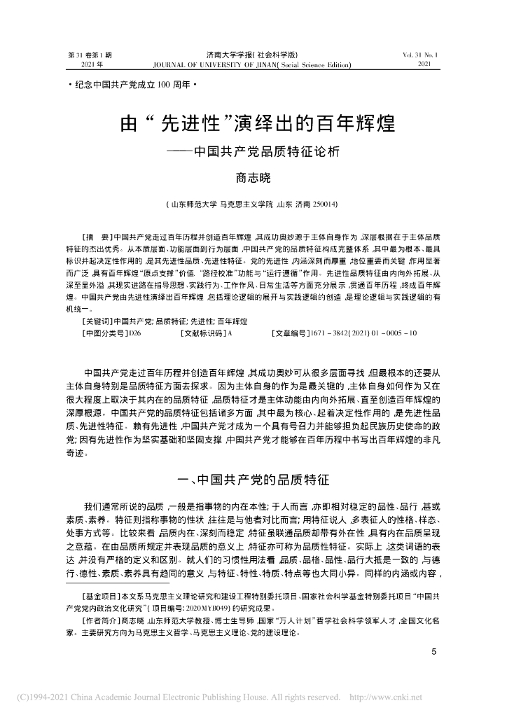 山东师范大学:由“ 先进性”演绎出的百年辉煌——中国共产党品质特征论析.pdf