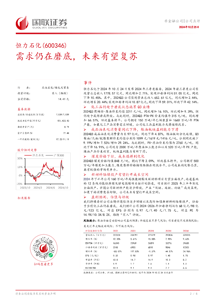 国联证券:恒力石化(600346)-需求仍在磨底,未来有望复苏.pdf