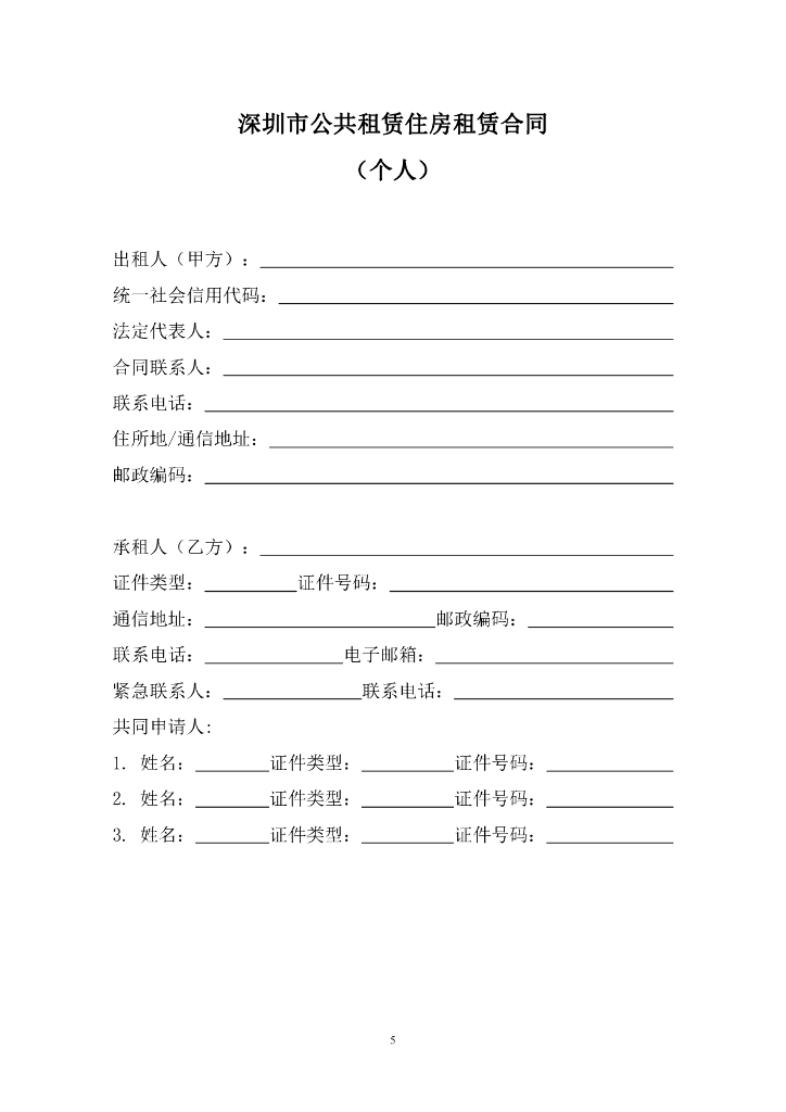 深圳市住房和建设局:深圳市公共租赁住房租赁合同(个人)示范文本.pdf