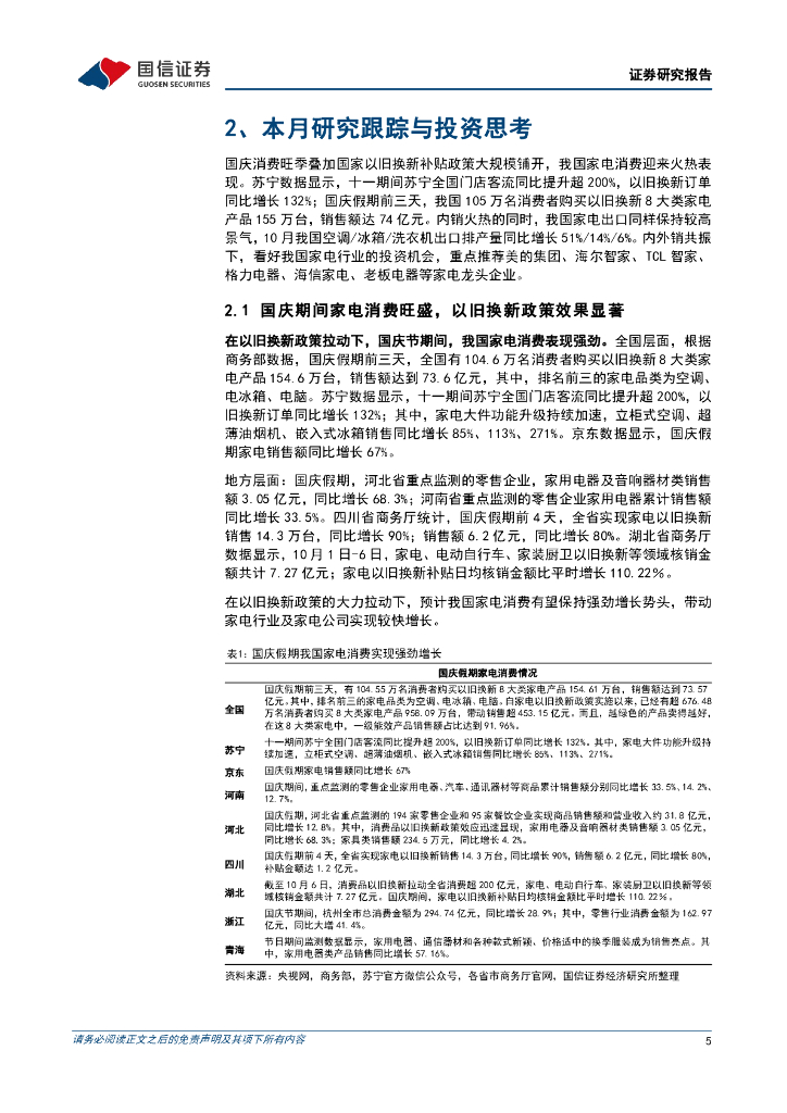 国信证券:家电行业2024年10月投资策略:国庆期间家电以旧换新销售强劲,10月白电内外销排产回暖.pdf