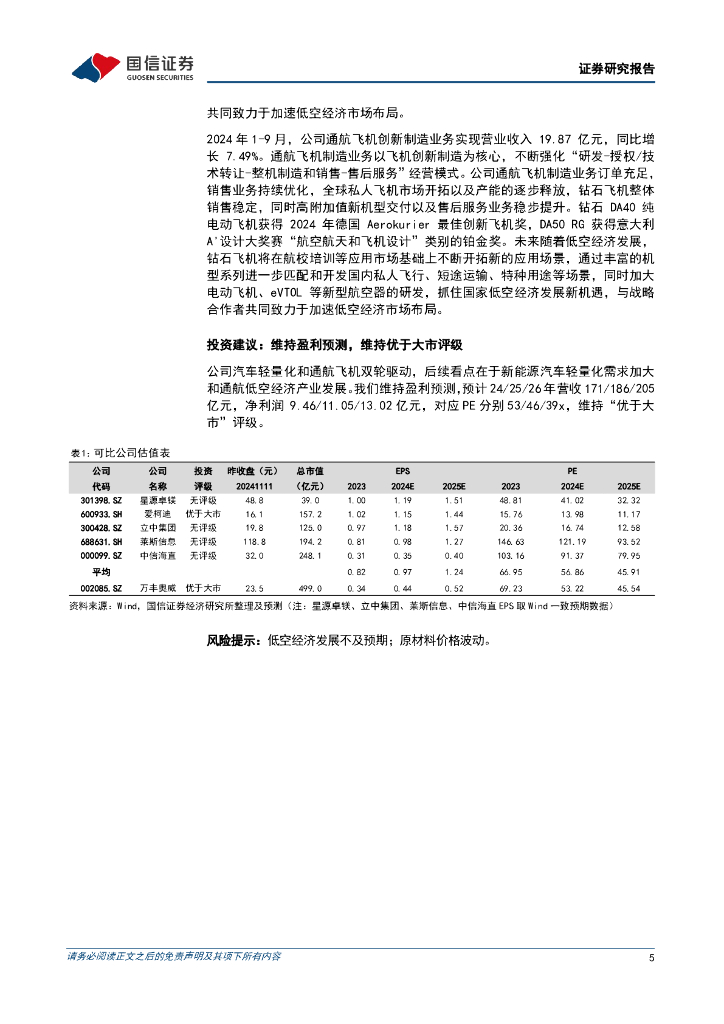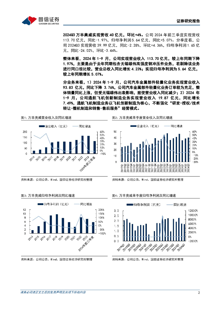 国信证券:万丰奥威(002085)-单三季度营收环比增长4%,通航飞机打开低空经济成长空间.pdf