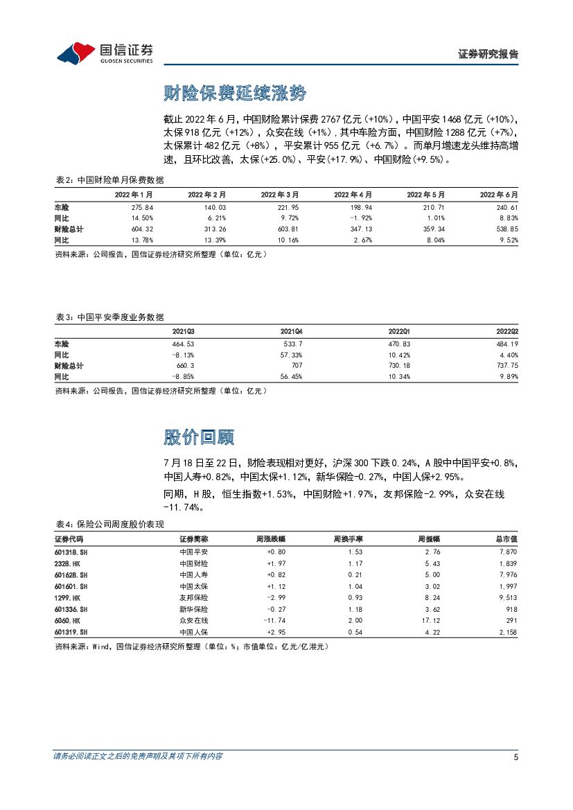 国信证券:保险周报(2022年第29周):寿险新单环比改善,财险延续涨势.pdf
