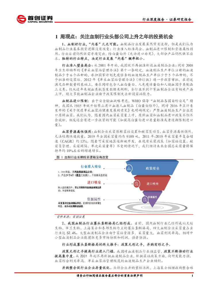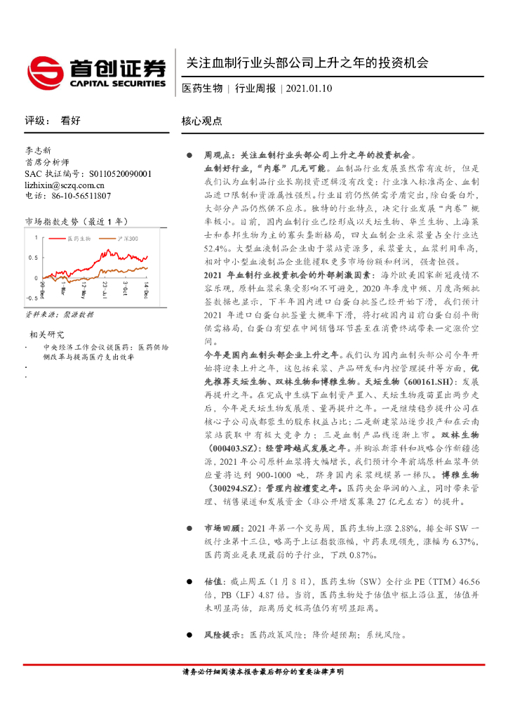 首创证券:医药生物行业周报:关注血制行业头部公司上升之年的投资机会.pdf