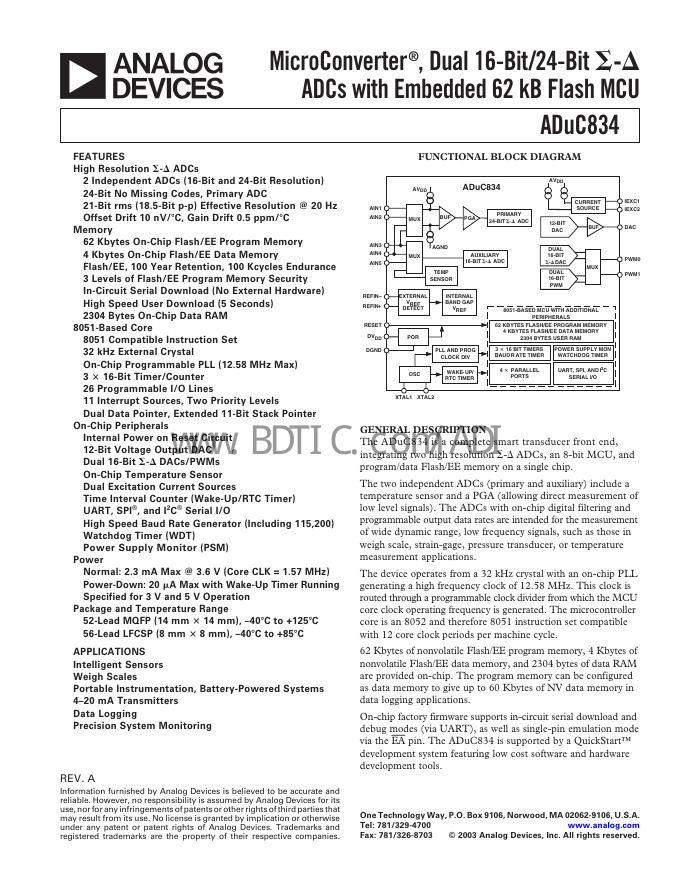 ANALOG DEVICES ADuC834 数据手册.pdf
