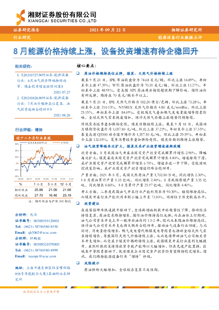 湘财证券:能源设备行业数据点评:8月能源价格持续上涨,设备投资增速有待企稳回升.pdf