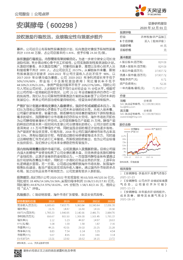 天风证券:安琪酵母(600298)-股权激励行稳致远,业绩稳定性有望逐步提升.pdf